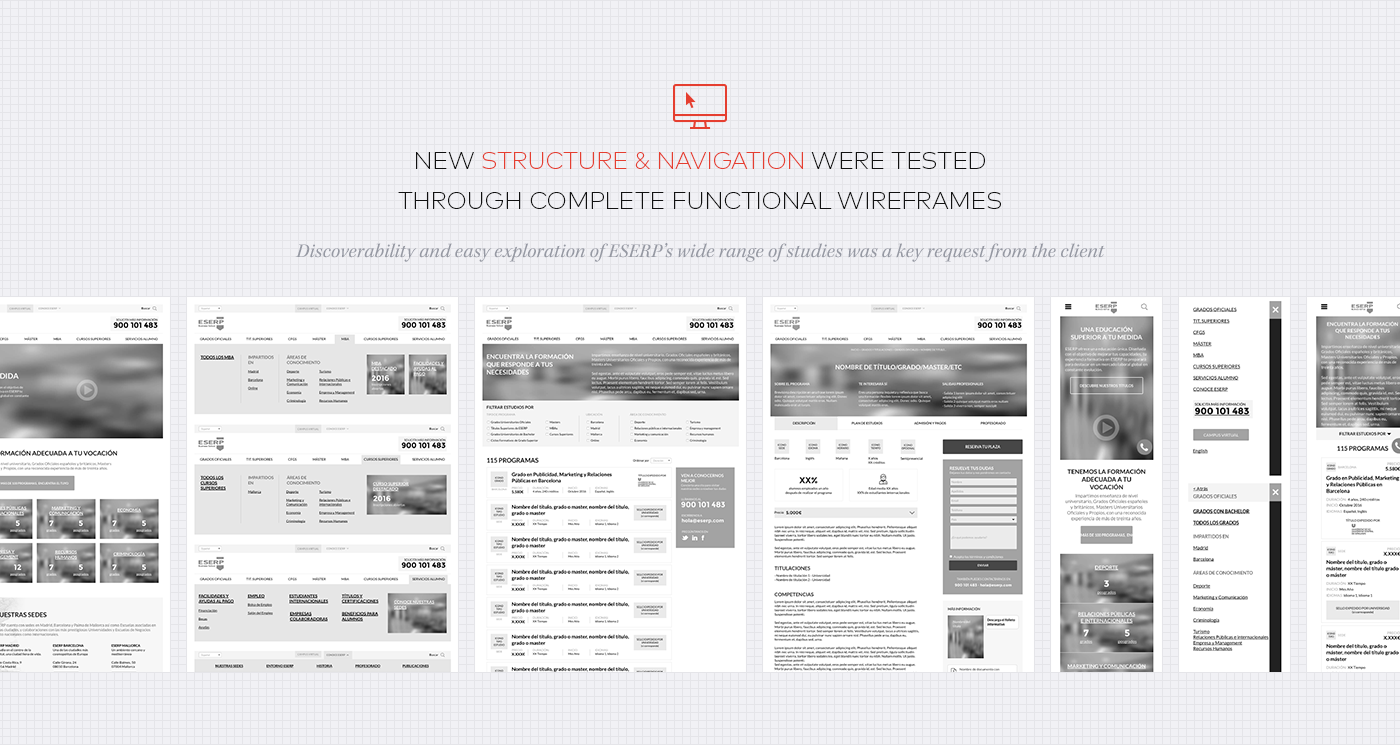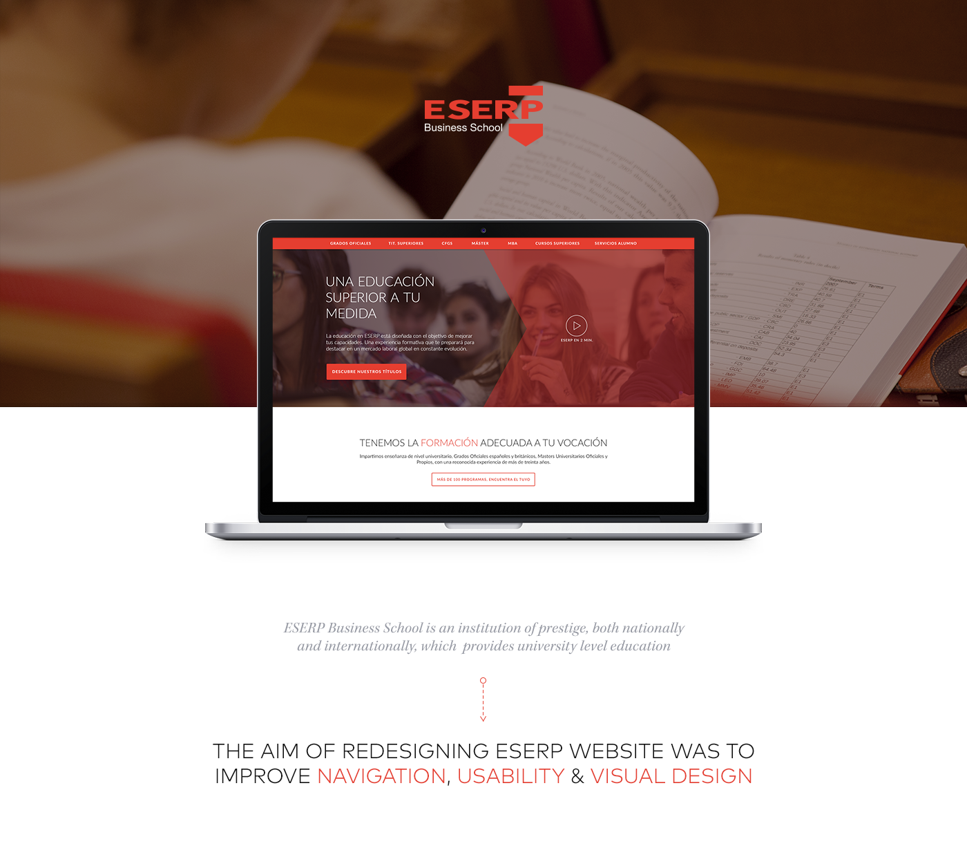 ESERP Business School is an institution of prestige, both nationally and internationally, which provides university level education. The aim of redesigning ESERP website was to improve navigation, usability & visual design. A new structure & navigation were tested through complete functional wireframes. Discoverability and easy exploration of ESERP’s wide range of studies were a key request from the client.