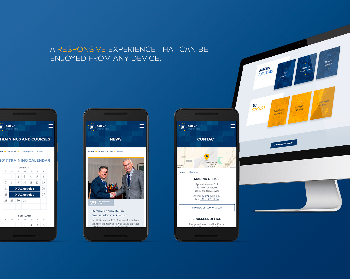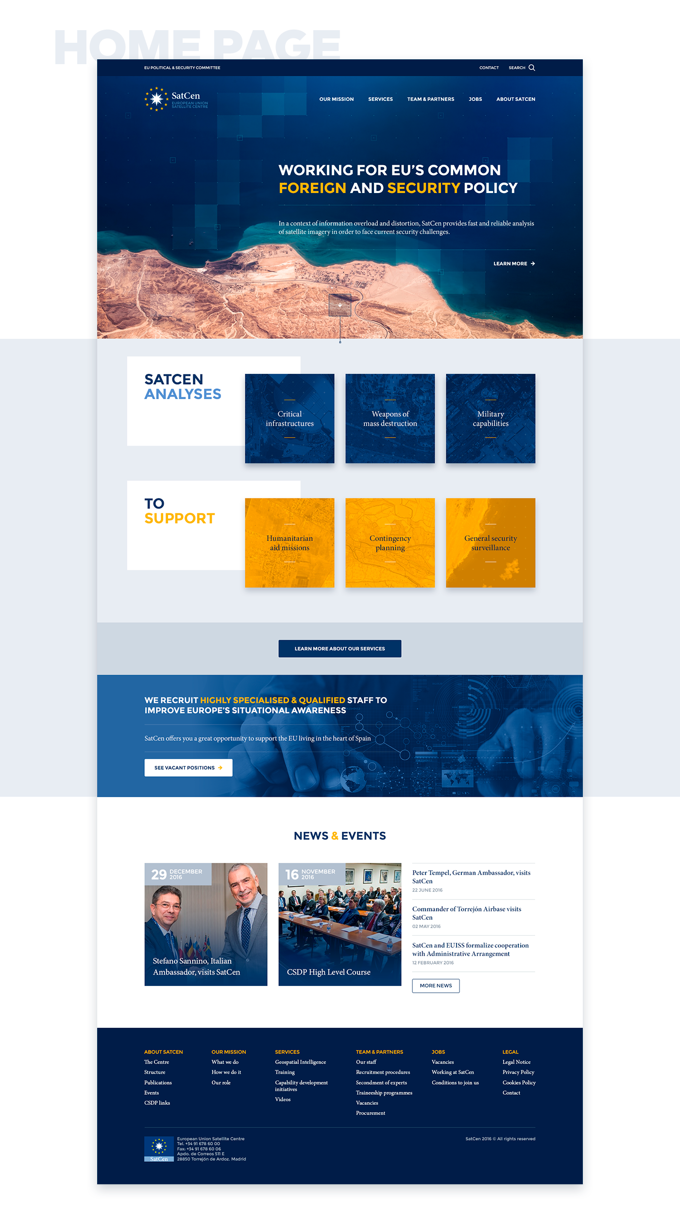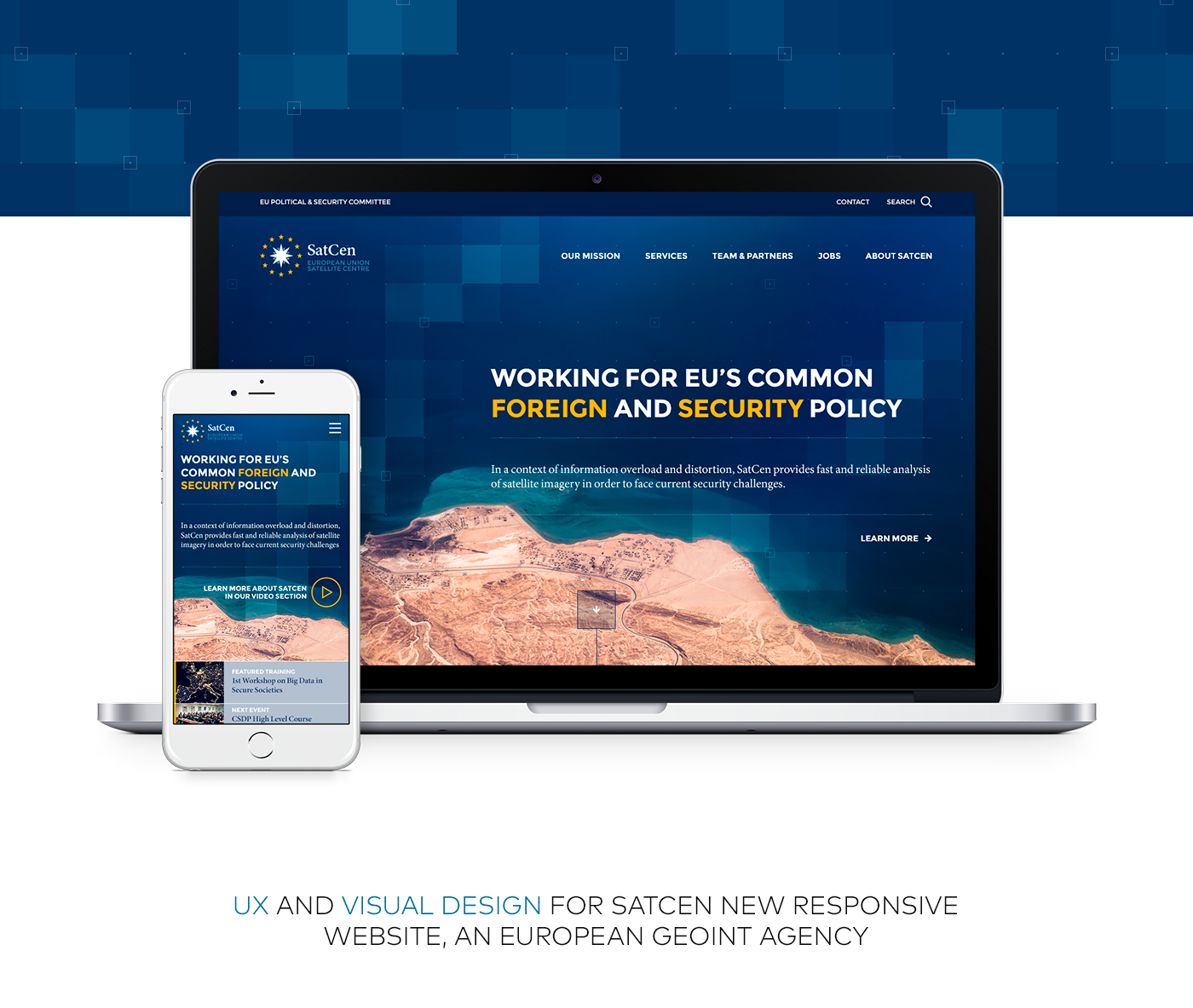 UX and visual design for SatCen (European Union Satellite Centre) new responsive website.